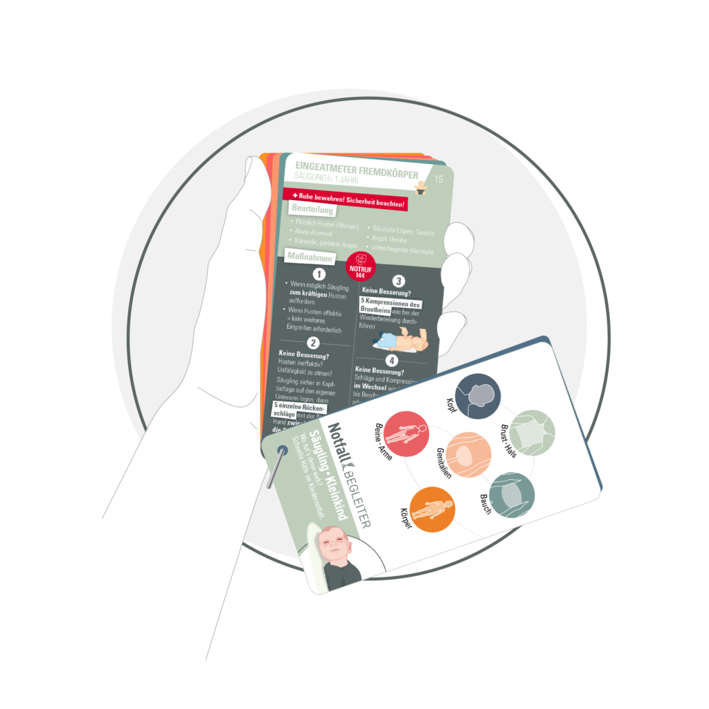 Mit seinen handlichen Notfallkarten im Fächerformat und der übersichtlichen Strukturierung nach Körperregionen gewährleistet er einen intuitiven und blitzschnellen Zugriff auf die 44 häufigsten Notfallsituationen im Säuglings- und Kindesalter. Darüber hinaus liefert er wertvolle Informationen zur Kindersicherheit, Wundversorgung, Verkehrsunfällen, Notrufnummern und vielem mehr.
