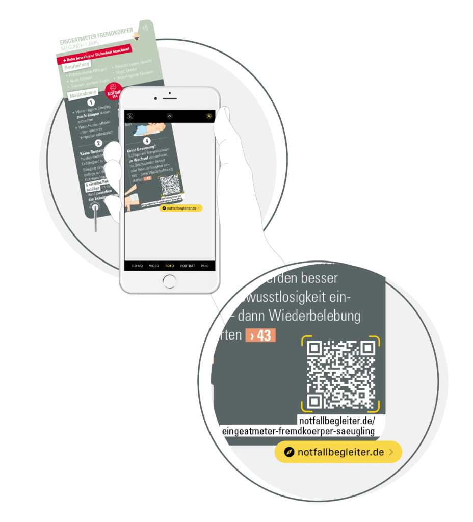 Deswegen haben wir 2022 unseren Notfallbegleiter – das Notfallkartenbuch – noch ein Stück innovativer gestaltet. Über einen QR-Code auf jeder Notfallkarte erreicht der Anwender ein kostenloses, ärztliches Erklärvideo zu seinem Notfall.