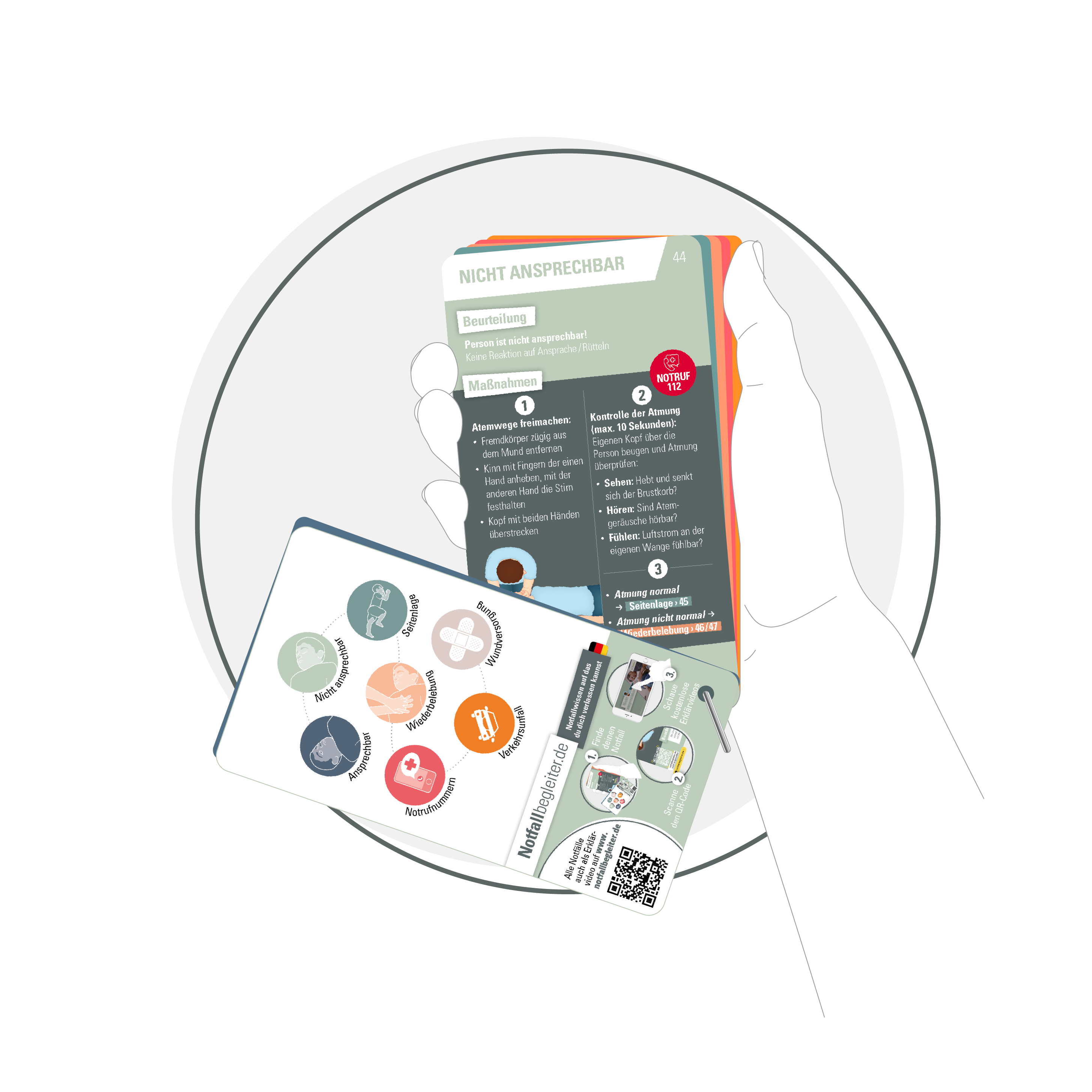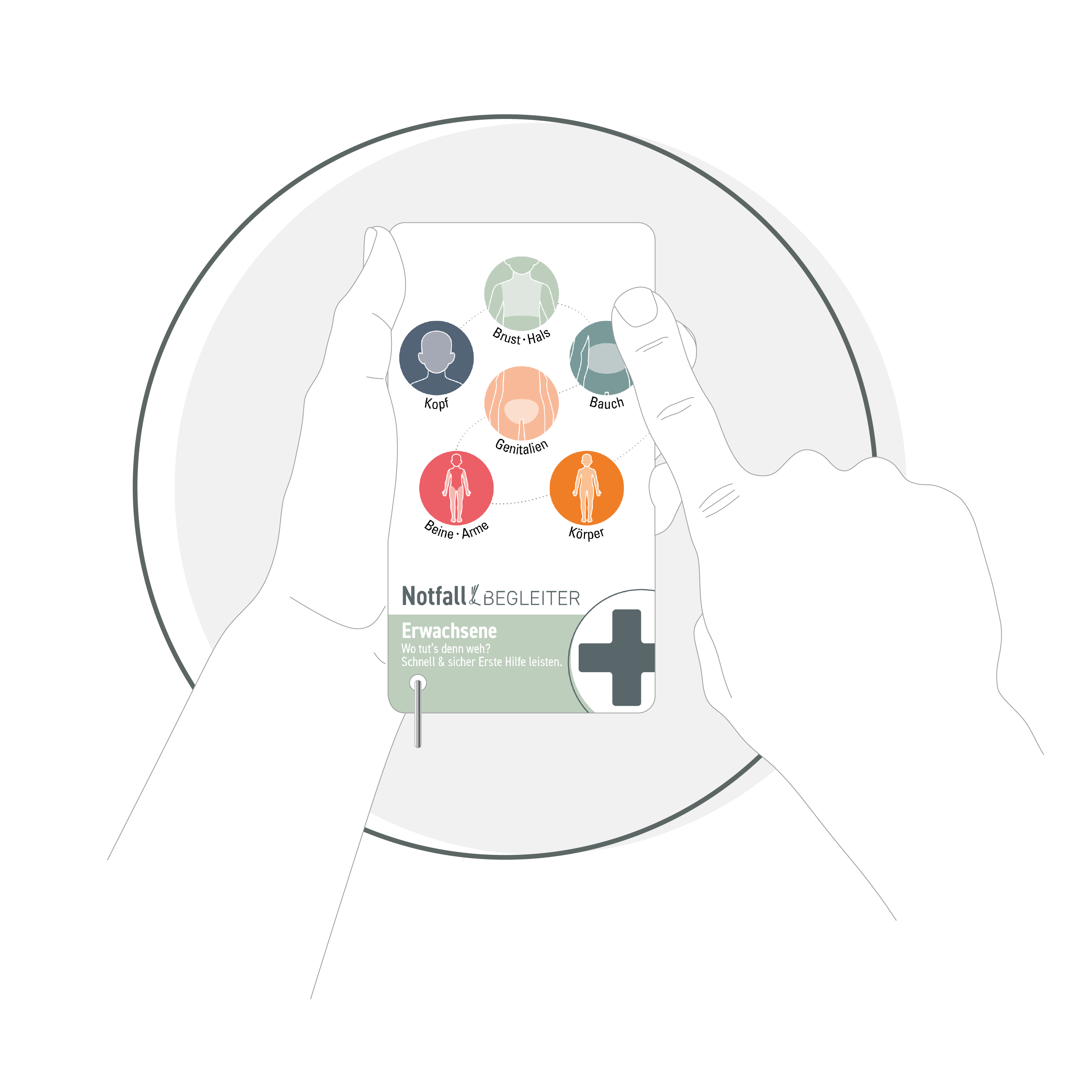 Deswegen haben wir 2022 unseren Notfallbegleiter – das Notfallkartenbuch – noch ein Stück innovativer gestaltet. Über einen QR-Code auf jeder Notfallkarte erreicht der Anwender ein kostenloses, ärztliches Erklärvideo zu seinem Notfall.