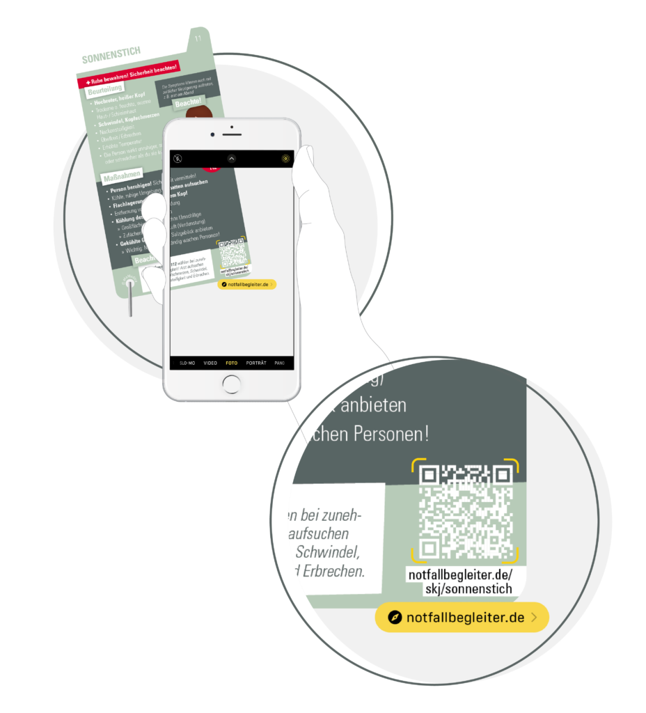 Deswegen haben wir 2022 unseren Notfallbegleiter – das Notfallkartenbuch – noch ein Stück innovativer gestaltet. Über einen QR-Code auf jeder Notfallkarte erreicht der Anwender ein kostenloses, ärztliches Erklärvideo zu seinem Notfall.