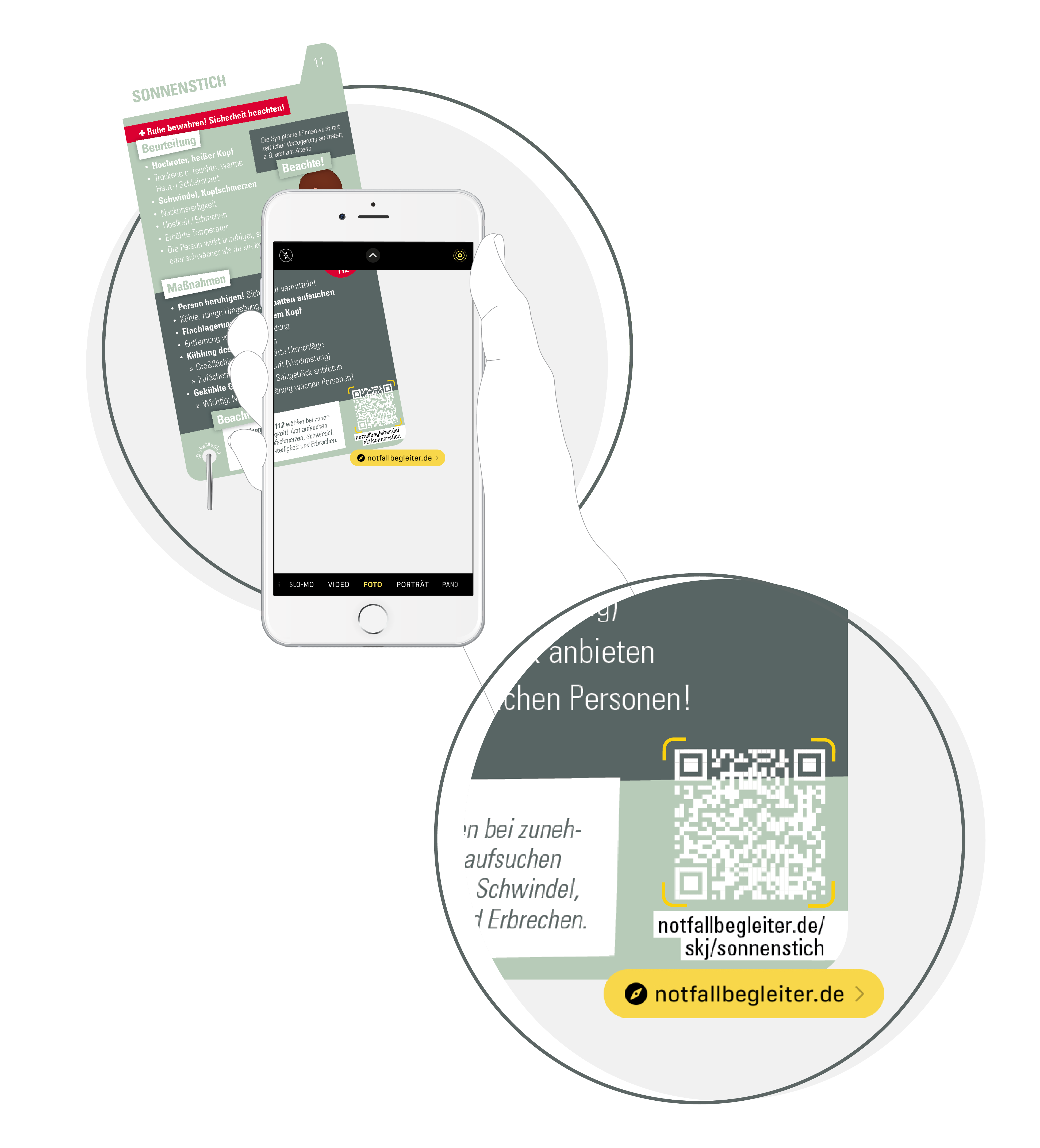 • Kostenlose Erklärvideos mittels QR-Code zu jedem Notfall